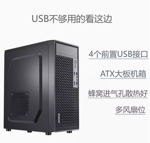 前置4个USB接口ATX大板家用商务电脑主机箱