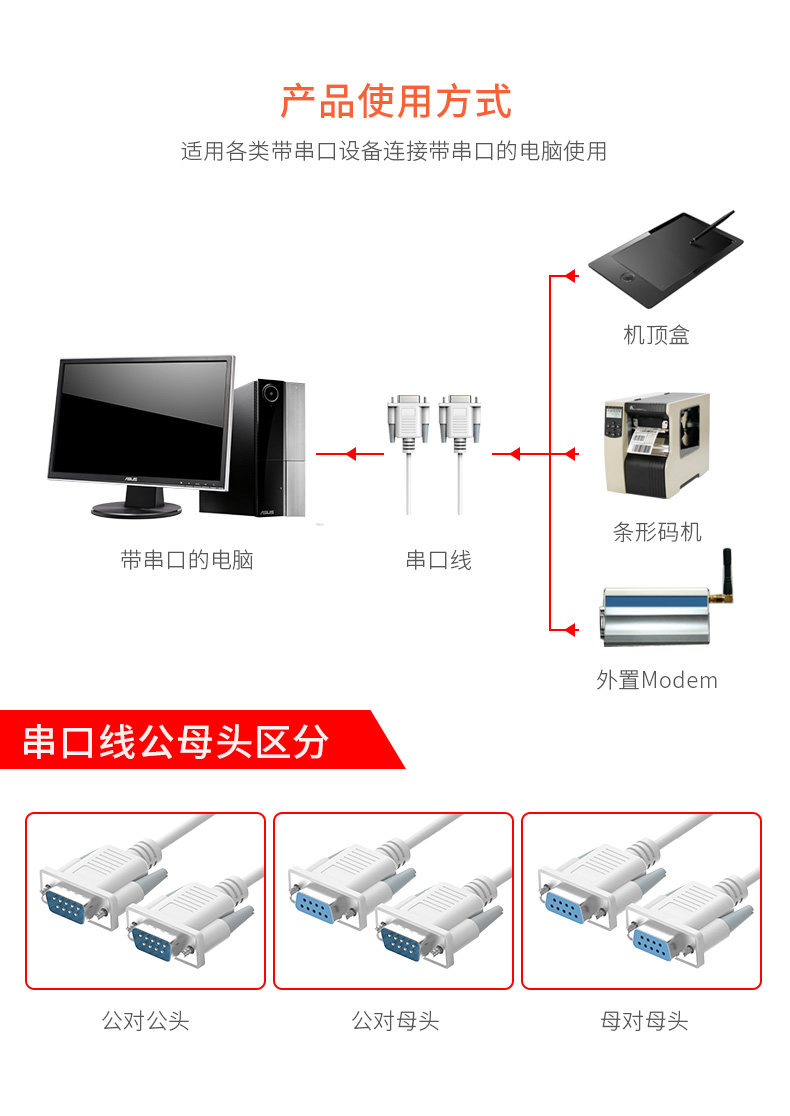 可用于带串口接口的电脑与串口系列设备进行连接同样适用于USB转串口的延长使用