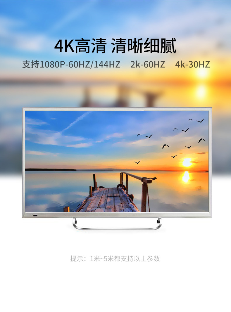 4K高清 清晰细腻 支持1080P-60HZ/144HZ 2k-60HZ 4k-30HZ