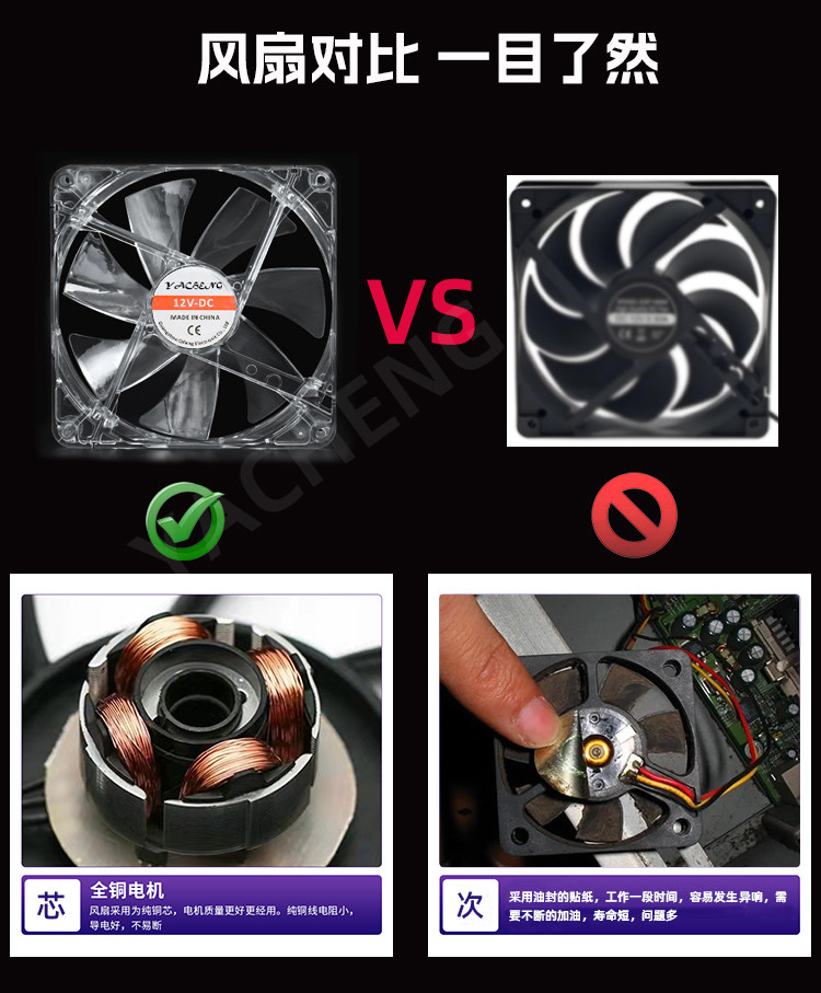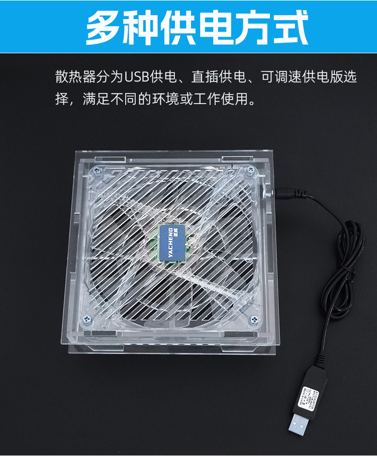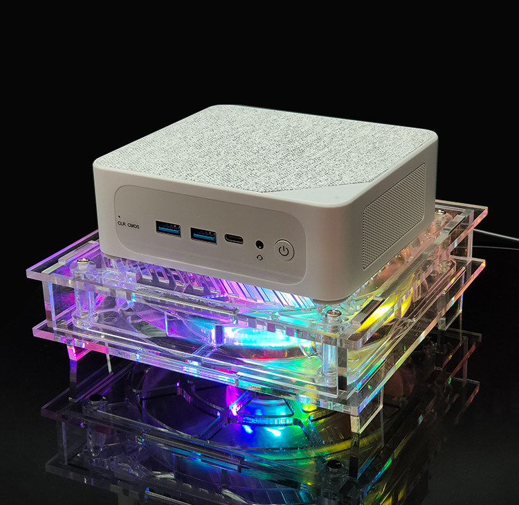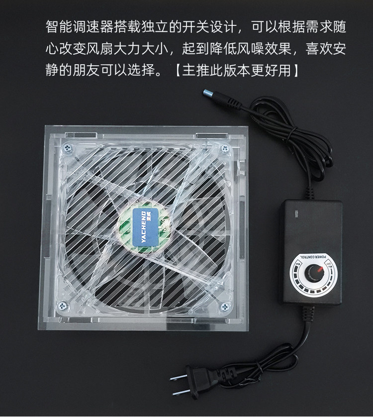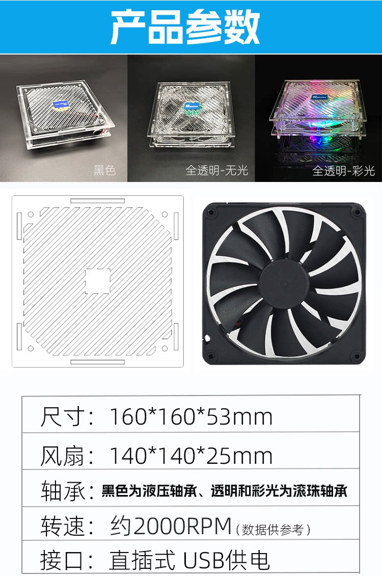 透明环保材质 全透明亚克力+全透明风扇、时尚美观,我们采用铜芯滚珠轴承,比普通风扇更加的耐用! 炫彩光灯效 散热器采用14CM透明风扇,搭配炫彩灯光,让氛围拉满,在夜间更具酷炫,摆脱单调的工作与生活。 平台可放置迷你主机、路由器、光猫、多功能电脑等发热设备,高效持续散热,确保机器稳定运行。