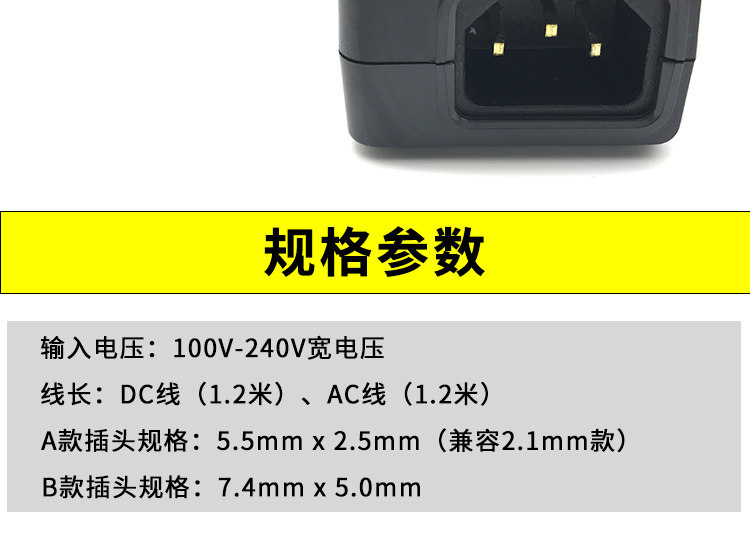 A款插头规格:5.5mmx2.5mm(兼容2.1mm款)
